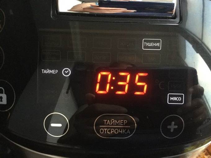 Закройте мультиварку и установите программу: тушение, мясо, 35 минут.