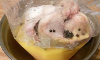 • Пакет закрыть, потрусить, чтобы соль и перец равномерно распределились, и поставить в холодильник на ночь.