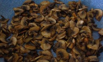 Обжарьте вместе с нарезанными грибами до золотистости.