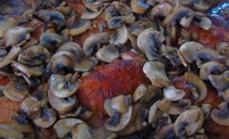 Всыпаем грибную смесь и заливаем оставшимся вином, отправляем опять в духовку на минут 20.