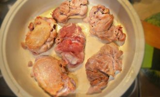 Затем поджарить куриное филе на оливковом масле с двух сторон до золотистой корочки.