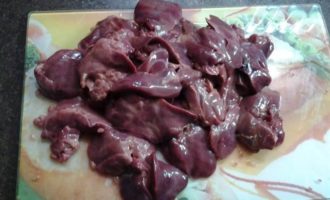 Печень очистить от прожилок, вымыть. Не резать, оставить крупными кусками.