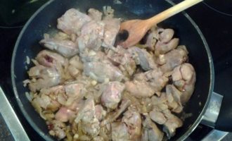 Добавить томатно-сметанный соус. Равномерно перемешать, довести до кипения. Подавать с любым гарниром.
