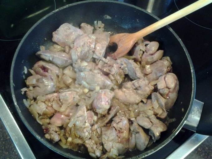 Печень очистить от прожилок, вымыть. Не резать, оставить крупными кусками.