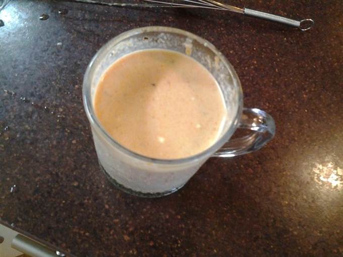 В чашке смешать кетчуп (у меня домашний, можно заменить томатной пастой 1ст.л.), крахмал, соль, порошок карри, сметану, воду.