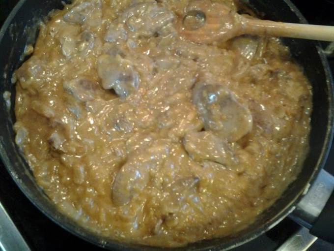 Добавить томатно-сметанный соус. Равномерно перемешать, довести до кипения. Подавать с любым гарниром.