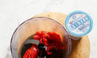 Затем аккуратно открыть, очистить перцы, удалить семена. Мякоть сложить в блендер, добавить сметану. Взбить, приправить солью и перцем.