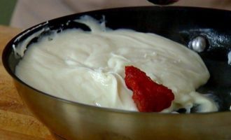 Приготовить соус: в сковороде растопить сливочное масло, добавить муку и, непрерывно перемешивая, обжаривать на медленном огне 3-5 минут. Влить молоко и, продолжая вымешивать, готовить еще 5 минут. Снять соус с огня, добавить томатную пасту и перемешать (соус должен получиться довольно густым).