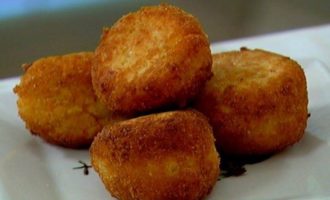 Разогреть в сотейнике оливковое масло и обжарить в нем крокеты до золотистой корочки, затем выложить на бумажное полотенце, чтобы удалить излишки жира.