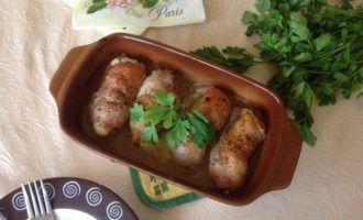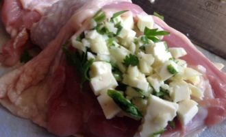 • В куриные ножки (у меня были сразу без косточки) вместо кости положите сырную начинку, и заверните так, чтобы начинка не выпадала.