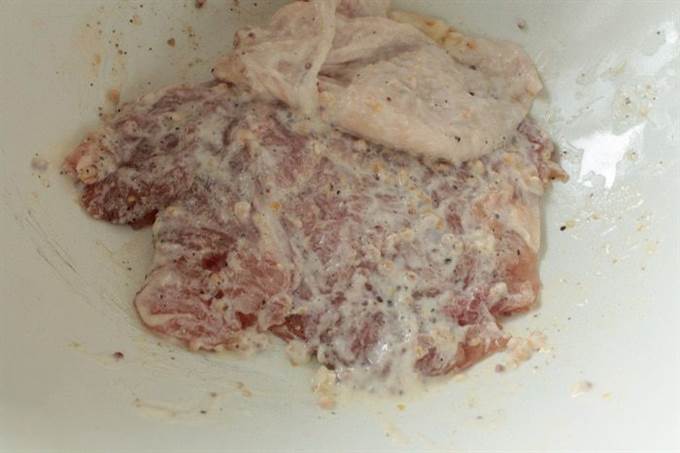 Хорошо смазать с двух сторон каждую мясную заготовку, накрыть посуду крышкой и поставить в холодильник.