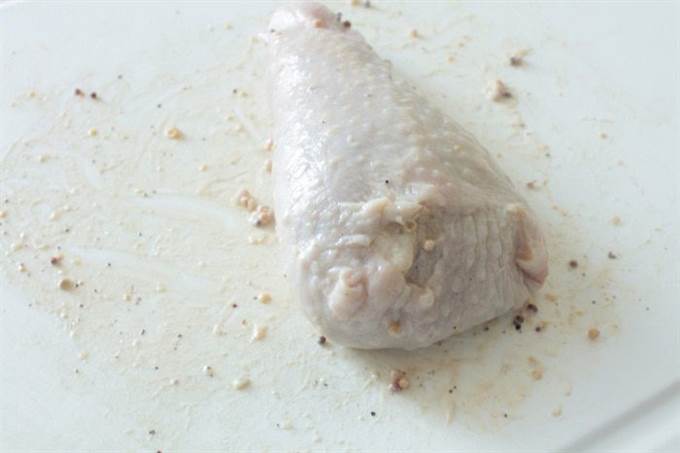 Куриные ножки помыть, почистить и обсушить полотенцем. Аккуратно отделить кожицу и затем мясо от косточки.