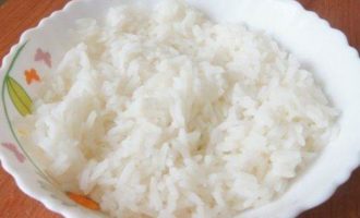 Отварить рис до готовности в подсоленной воде. У меня тот, что варится в пакетике. -