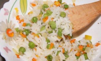 Смешать рис с овощами.