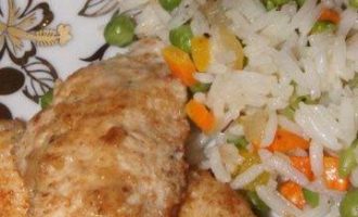 Достать из духовки куриную отбивную и подавать с рисом.