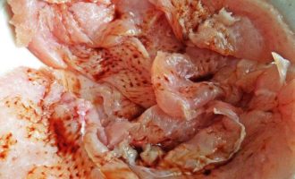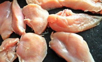 • Филе нарезать на тонкие ломтики.