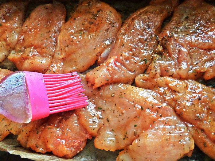 • Отбить и полить соевым соусом.