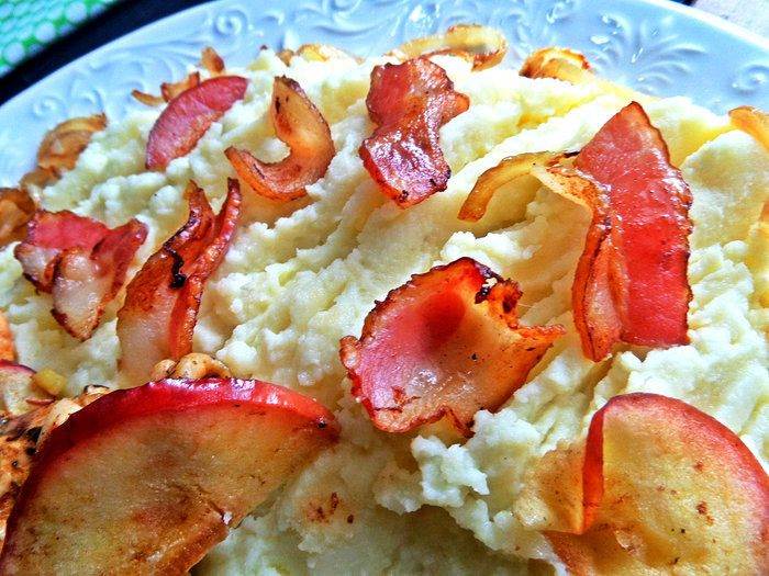 • На пюре я положила беконовые чипсы.
