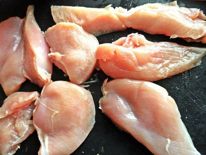 • Филе нарезать на тонкие ломтики.