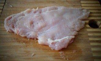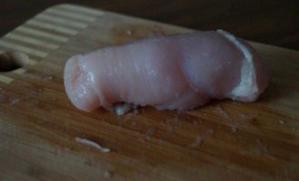 Куриное филе промыть, обсушить и отбить. Натереть солью и перцем.
