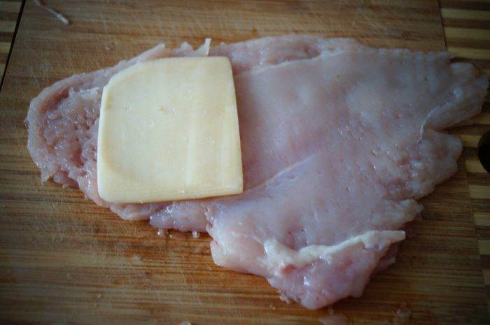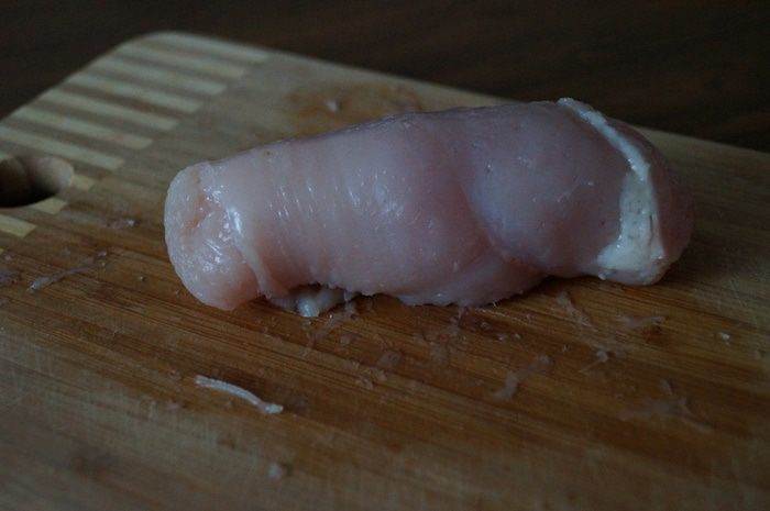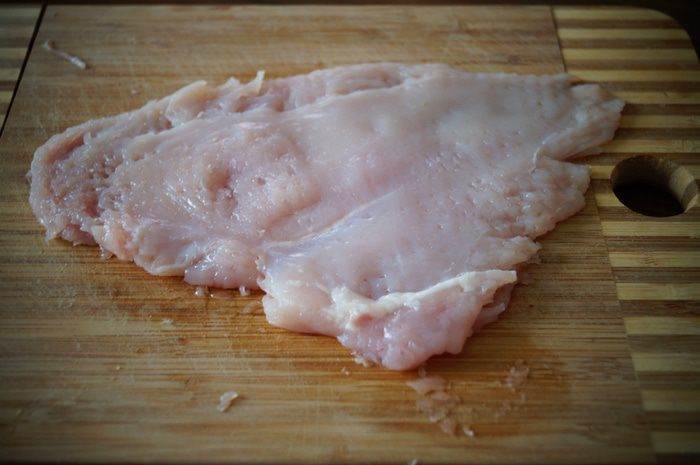 Куриное филе промыть, обсушить и отбить. Натереть солью и перцем.