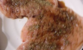 Этой смесью обмазать куски филе и убрать в холодильник на 30 минут.