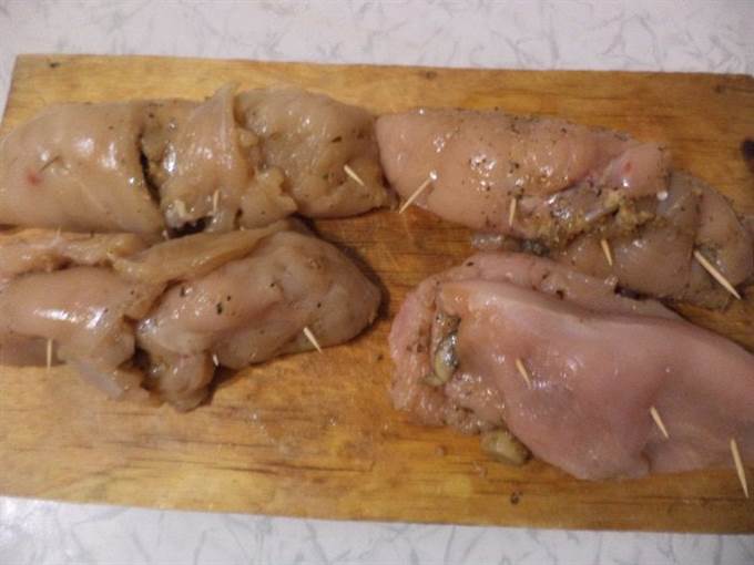 • Свернуть филе рулетиком и скрепить зубочисткой.