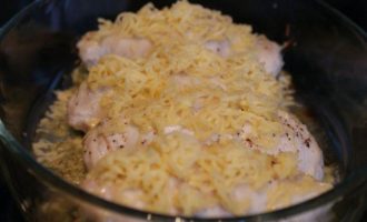 • Через 20 минут сверху посыпать сыром рулетики. Запекать еще минут 20 до золотистой корочки сыра.