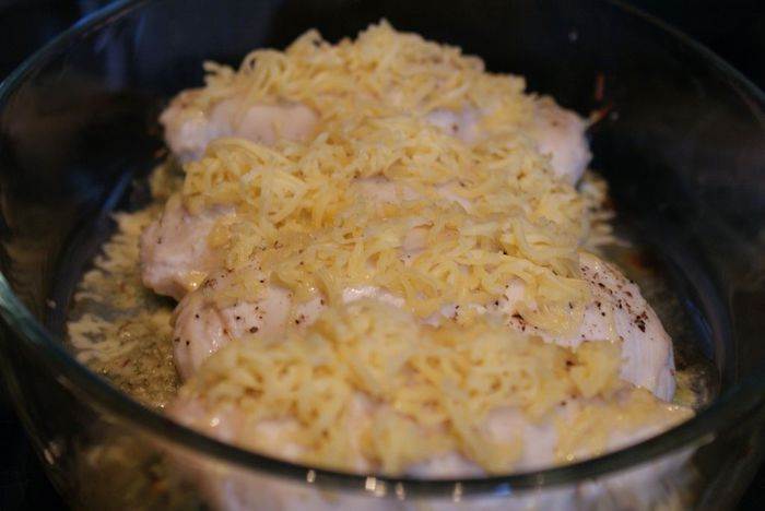 • Через 20 минут сверху посыпать сыром рулетики. Запекать еще минут 20 до золотистой корочки сыра.