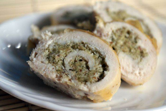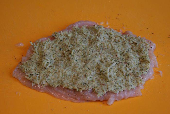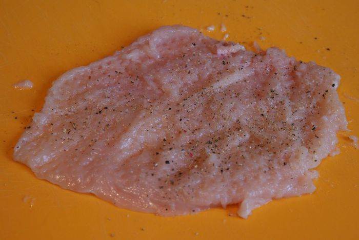 • Аккуратно свернуть рулетиком и сколоть зубочистками. Посолить и поперчить сверху.