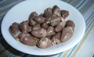• Сердечки отварить в подсоленной воде до готовности. Я варю в скороварке 10 мин.
