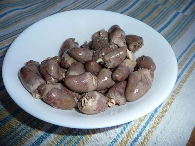 • Сердечки отварить в подсоленной воде до готовности. Я варю в скороварке 10 мин.