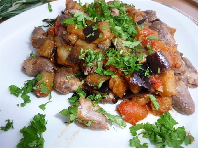 • Влить томаты в собственном соку, розмарин нарвать, протушить пару минут. Соль, специи по вкусу.