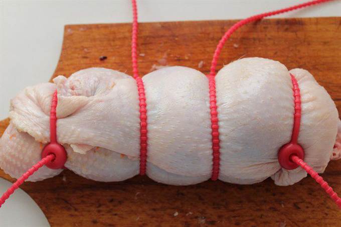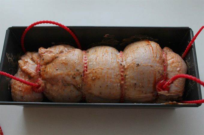 Аккуратно свернуть рулетом, зафиксировав жгутиками или бечевкой.