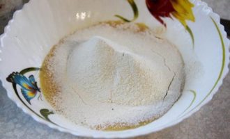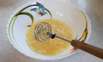 В миску разбиваем яйца. Желток от одного оставим для смазывания пирога.