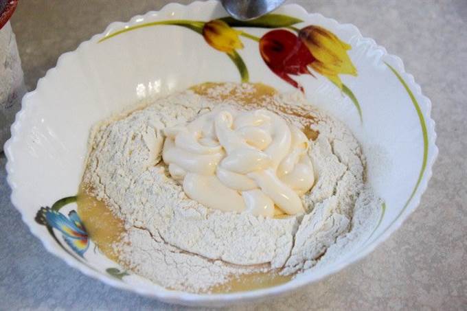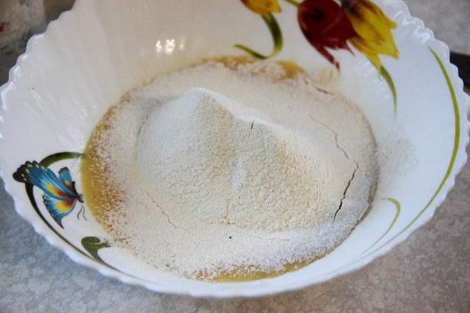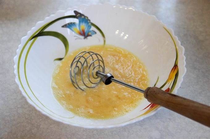 В миску разбиваем яйца. Желток от одного оставим для смазывания пирога.