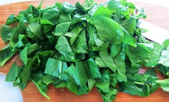 Добавьте к соусу крупно порубленный шпинат.