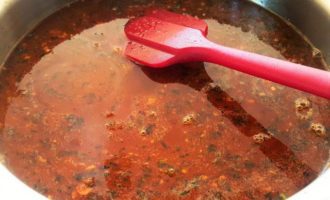 Дайте покипеть еще минуты 2, посолите и поперчите по вашему вкусу. В отдельной небольшой емкости разведите 2 ст. ложки кукурузного крахмала с 4 ст. л. воды, перемешайте до однородной консистенции, влейте в горячий соус, перемешайте.