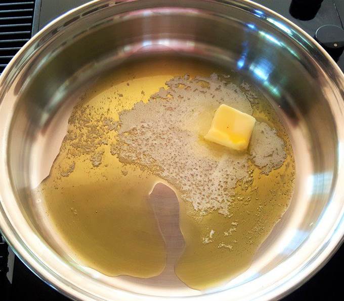 Хорошо расколите сковороду со оливковым и сливочным маслами (2 ст. л. сливочного).