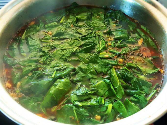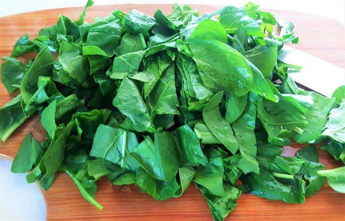 Добавьте к соусу крупно порубленный шпинат.
