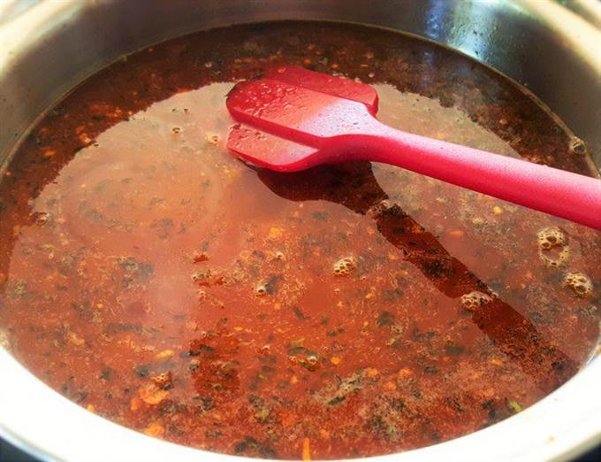 Дайте покипеть еще минуты 2, посолите и поперчите по вашему вкусу. В отдельной небольшой емкости разведите 2 ст. ложки кукурузного крахмала с 4 ст. л. воды, перемешайте до однородной консистенции, влейте в горячий соус, перемешайте.