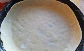 Крутила, вертела… Обмотать каждый кусочек было мало, а вот на такую основу (22 см) как раз хватило! Раскатать тонко и перенести в форму. Дно решила не накалывать, чтобы не убежал весь сок.