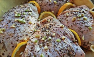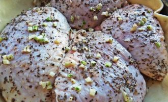 Курочку промоем, обсушим и обваляем в специях. Оставим ненадолго.