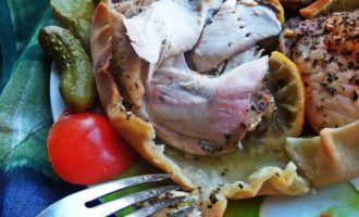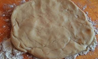 Тесто подойдёт любое, у нас сделано простейшее из масла, воды и муки и соли.