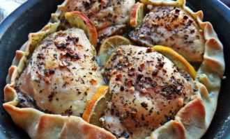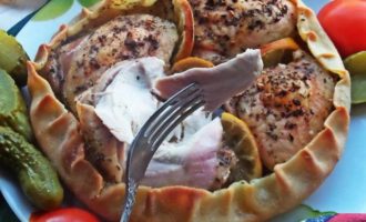 Края защипать и пройтись по ним кисточкой с маслом. Запекаем при 180°С.