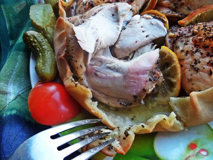 Вот такую форму вынимаем через 45-50 минут! Аромат чеснока стоял сногсшибательный, но мы любим чеснок. Минут 5 дала постоять в выключенной духовке, чтобы всё успокоилось.
