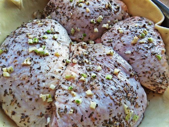Курочку промоем, обсушим и обваляем в специях. Оставим ненадолго.