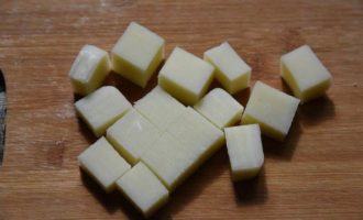 Помидоры (у автора — «бакинские») порезать четвертинками (или, если небольшие, половинками). Я же использовала помидоры черри, чей размер очень хорошо подходил для этих шашлыков (купить их оказалось проще, чем найти бакинские помидоры). Сыр сулугуни нарезать кубиками размером с помидор. Автор пробовал с сыром маасдам, но говорит, что получается «не то» — с сулугуни гораздо вкуснее.
