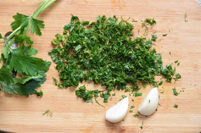 Приготовим ароматную часть. Укроп и петрушку помыть и мелко порезать. -