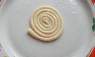 Каждую раскатанную полоску скручиваем на тарелку смазанную маслицем.